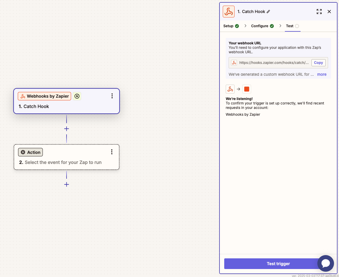Step 1: Create a Catch Hook trigger in Zapier and copy the URL